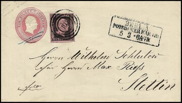 "104" nebst Ra3 "Berlin Potsdamer Bahnh." auf Ganzsache 1 Sgr. mit ZuF zweimal 1 Sgr.