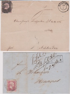 "91" nebst K2 "Bendorf" auf Briefvs. 1 Sgr., sowie nebst Ra2 auf gefaltetem Brief 1 Sgr.