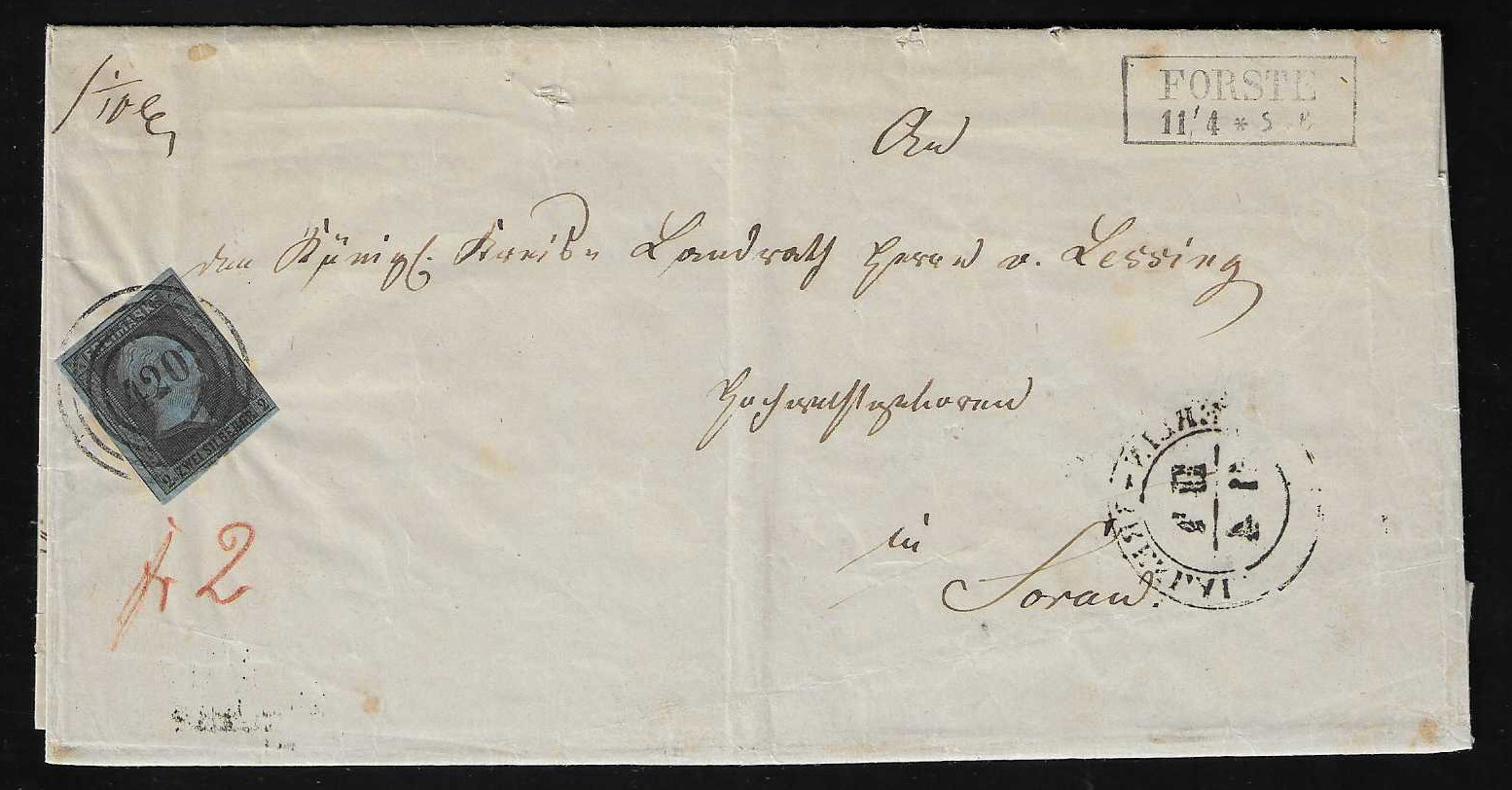 "420" nebst Ra2 "Forste" sehr klar auf Doppelbrief mit rechts gering ber. 2 Sgr.