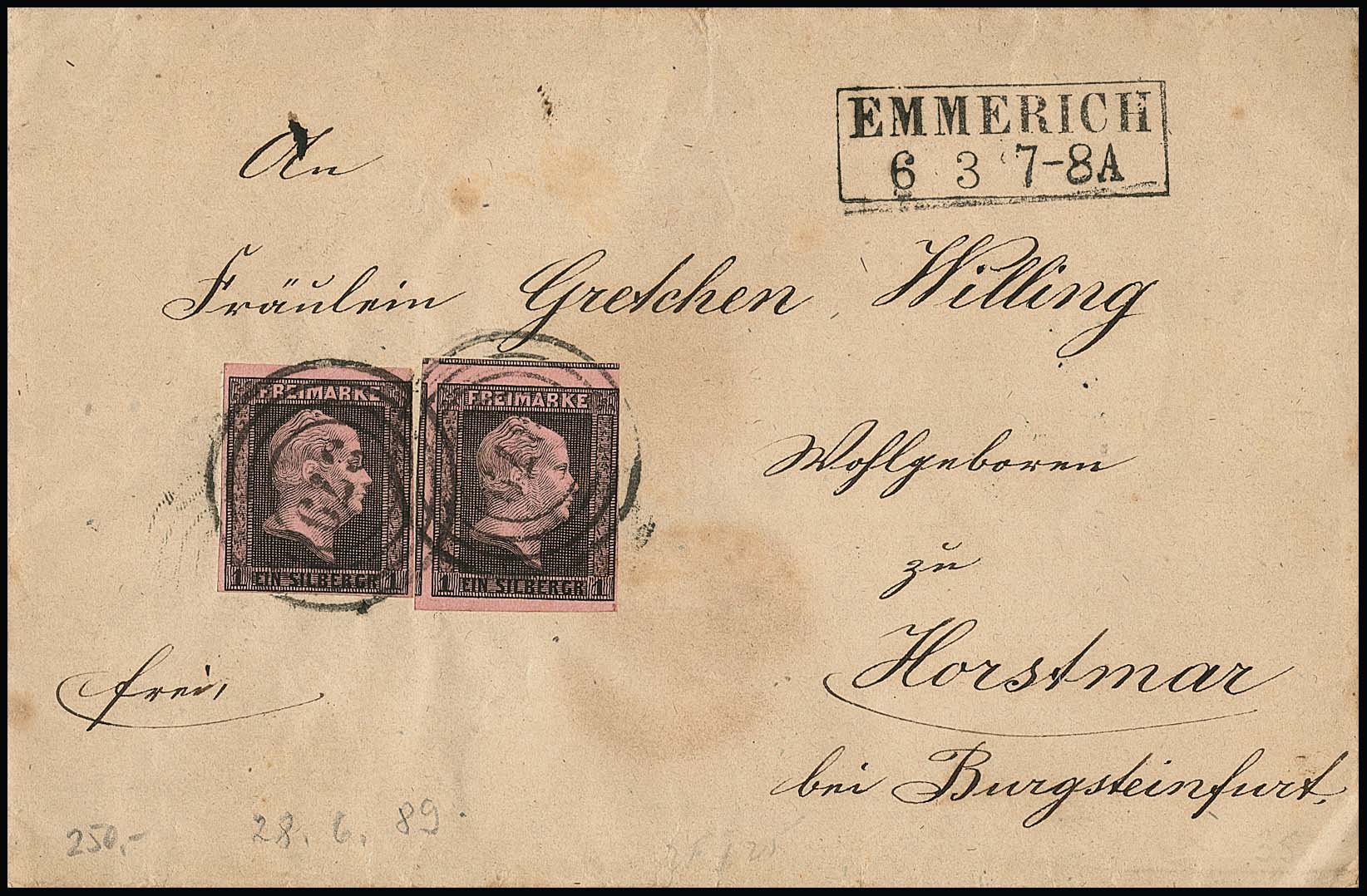 "379" nebst Ra2 "Emmerich" klar auf Brief mit zwei 1 Sgr. (eine etwas knapp)