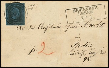 "368" nebst Ra3 "Eichenbarleben" klar auf Prachtbriefchen mit breitrandiger 2 Sgr.