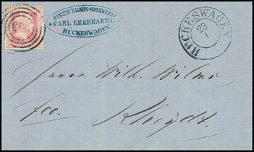 "655" nebst K2 "Hückeswagen" auf Kabinettbrief 1 Sgr., auf Brief ein seltener Rheinland-NS!