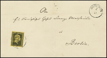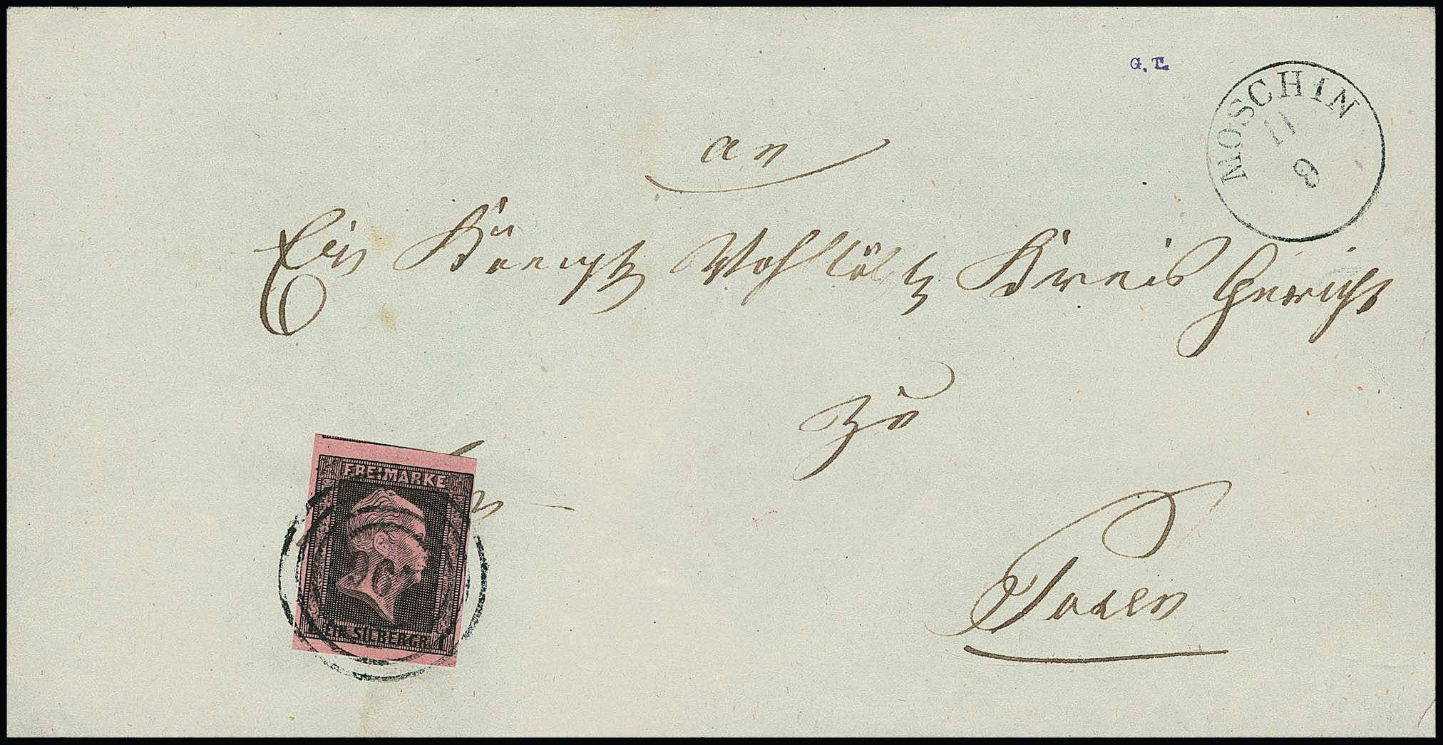 "967" nebst vorphil. K1 "Moschin" auf Faltbrief mit Kabinettstück 3 Sgr.