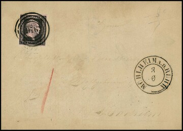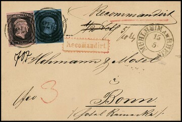 "975" nebst K2 "Mühlheim am Rhein" klar auf Recobrief mit 1 und 2 Sgr., letztere rechts oben gering berührt