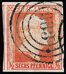 "963" (Montjoie/Monschau) zentrisch klar auf Kabinettstück 3 Sgr., sign. Meier