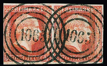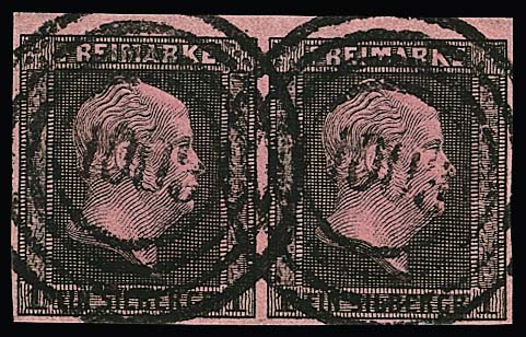 "1065" (Nordhausen) sehr klar auf Paar 1/2 Sgr. (rechte Marke Knitter)