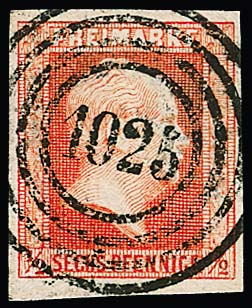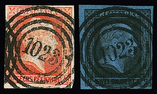 "1023" (Neurode) je klar zentrisch auf 1/2 Sgr. rotorange und auf Kabinettstück 2 Sgr.