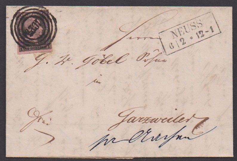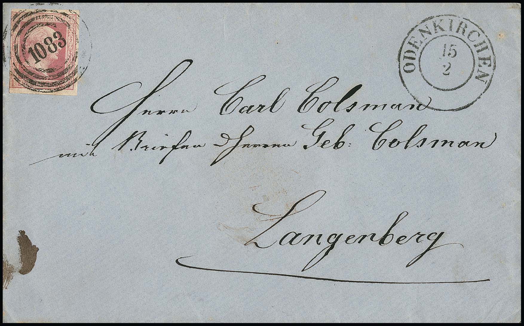 "1083" nebst vorphil. K2 "Odenkirchen" klar auf Couvert 1 Sgr. (links ber.), guter Rheinland-NS, Feuser + 180,-