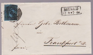 "1042" nebst Ra2 "Neuwied" klar auf Brief 2 Sgr. (natürliche Stempel-Stauchung)