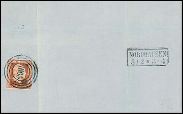 "1065" nebst Ra2 "Nordhausen" klar auf gefalteter Drucksache (ohne Schleife) mit Prachtstück 1/2 Sgr.