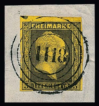 "1118" (Paderborn) auf Kabinettbriefstück 3 Sgr., auf loser 1 Sgr., sowie auf etwas unfrischem Brief 1 Sgr.