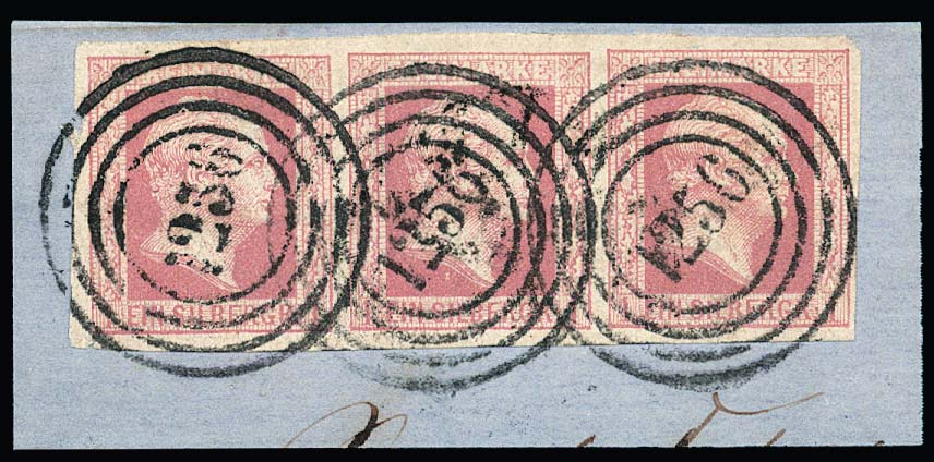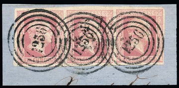 "1256" (Ronsdorf) klar auf Prachtbriefstück mit breitrandigem Dreierstreifen 1 Sgr.