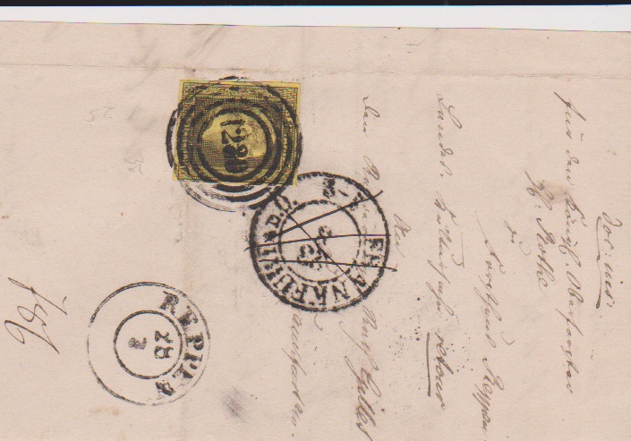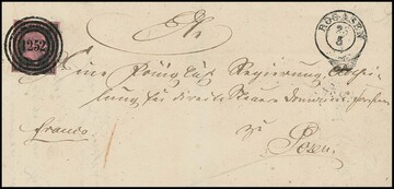 "1230" nebst K2 "Reppen" klar auf Vorderseite eines Post-Ins.-Doc. mit perfekter 3 Sgr.