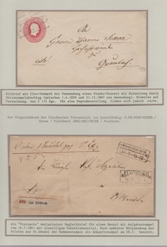 "Fischbach Reg. Bez. Trier", Ra3 auf sechs Belegen (einmal teilaptiert auf Postschein 1860), sowie vier weitere Belege
