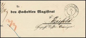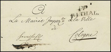 "Ehrenbreitstein", 1809/10, je guter schwarzer L1 "R.1. THAL", einmal zusätzlich L1 "PP", auf zwei Briefen mit Inhalt, u.a. aus Breitenau, Feuser 824-3, 300,-