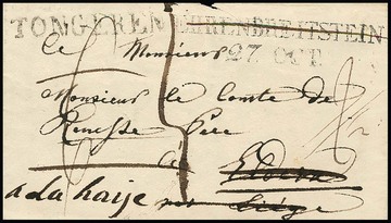 "Ehrenbreitstein", 1817, L2 auf interessantem Adels-Nachsendebrief nach Belgien, von dort mit L1 "Tongeren" nach Den Haag weitergesandt