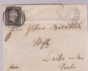 "1595" nebst K2 "Wegersleben" auf Brief 1 Sgr. (berührt, Bugspur)