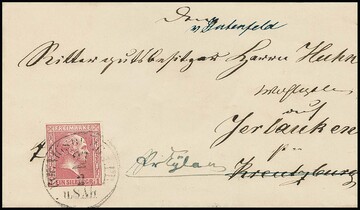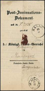 "Halle", 1856, K1 in der seltenen Sondertype (siehe Foto) klar auf Post-Ins.-Doc., sign. Flemming mit hs. Bestätigung "selten"