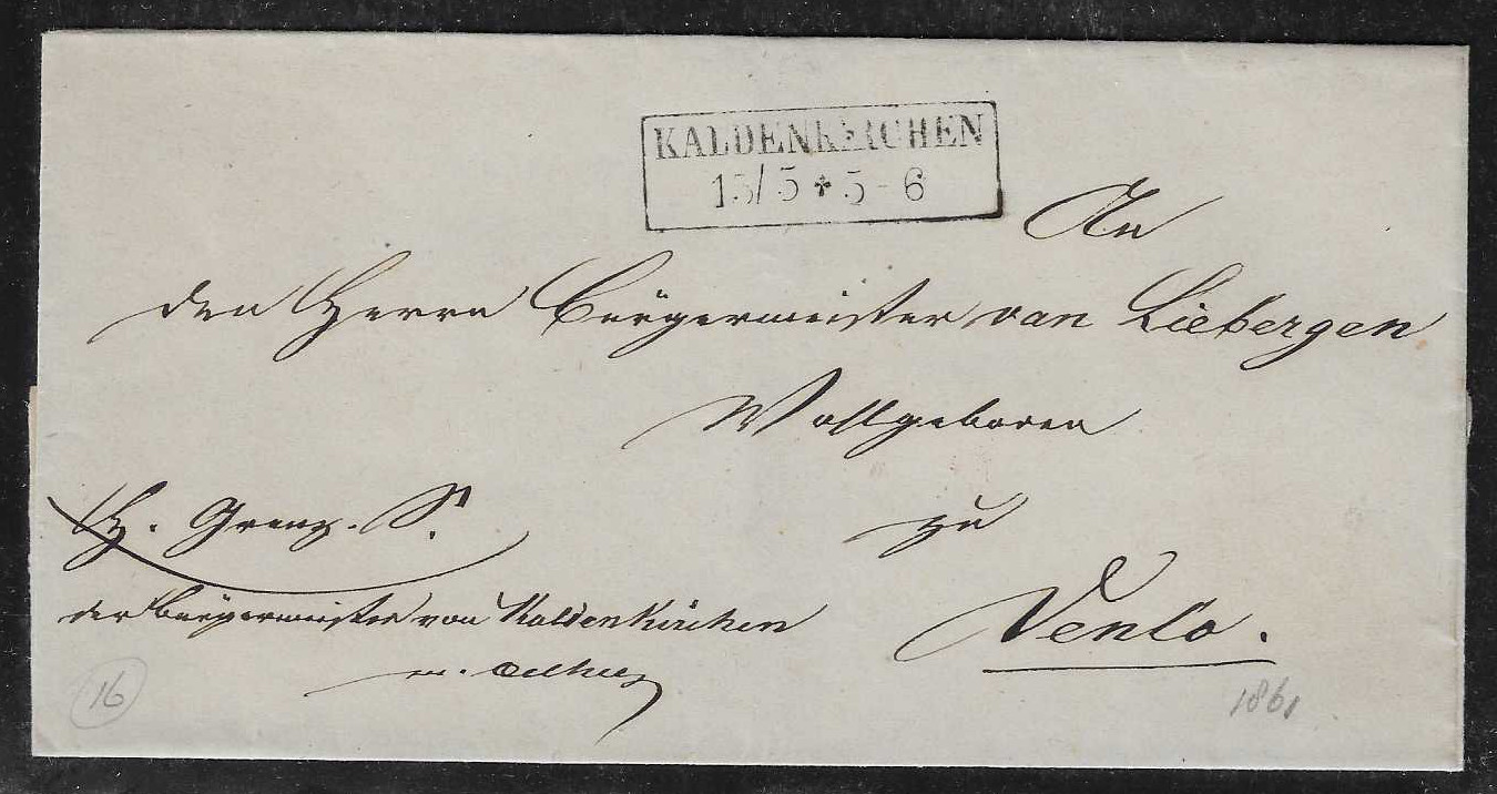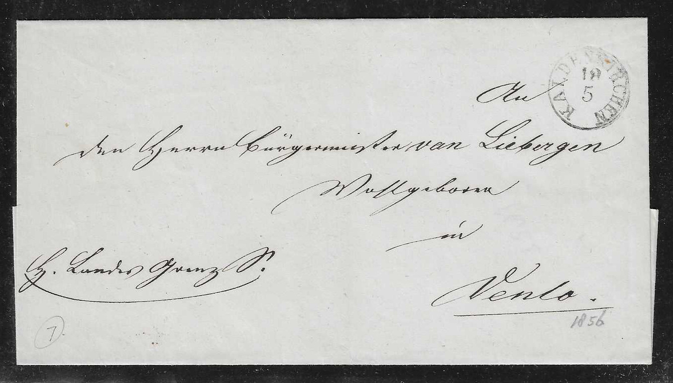 "Kaltenkirchen", 1856/61, K1 bzw. Ra2 auf zwei Briefen nach Venlo (Grenzrayon)