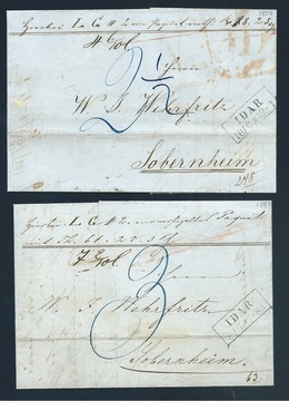 "Idar", 1854, klare Ra2 auf zwei Paketbriefen nach Sobernheim