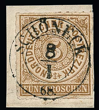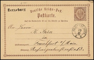 "Riesa", seltener K1 in Sondertype, nur auf dem Bahnhof verwandt, auf Wappen-Ganzsache 1 Ngr. (kl. Gebrauchsmgl. rechts am Rand)