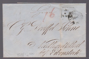 "Leipzig", 1850, Briefsammlungs-Ra3 "No." vs. und rs., nebst K2, auf Brief (Falte etwas getönt) nach Eibenstock
