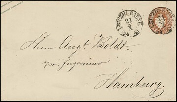 "Leipzig-Bahnh.", seltener K2 als Entwertung auf Wappen-Ganzsache 3 Ngr., Milde 800 P.