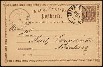 "Leipzig", K2 klar 1874 auf Brustschild-Ganzsachenkarte 2 Kr. braun (min. "eckrund"), seltene Währungsfremdverwendung einer Kreuzer-Karte im sächsischen Groschengebiet, Attest Brugger
