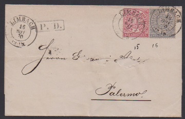 "Limbach", nachverw. K2 klar auf Auslandsbrief (Adressname teils entfernt) mit NDP 1 u. 2 Gr. nach Palermo 1870