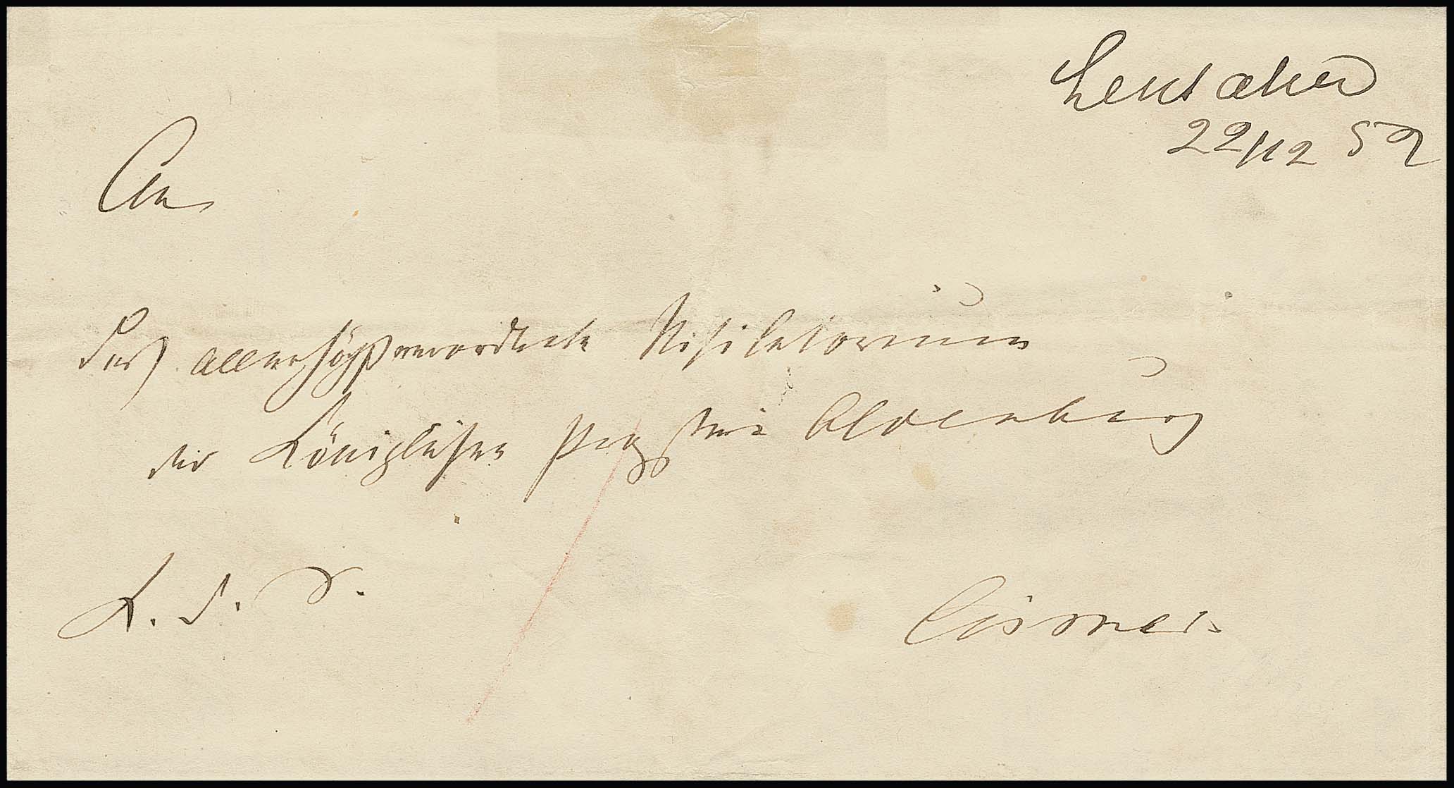 "Hanerau", 1850, der Landpost-Ra2 "L.P. No. 2", nebst hs. Aufgabe "Itzehoe", auf Faltbrief nach Segeberg, Brief deutliche Tesaspuren
