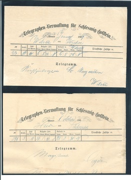 "Heide", 1866, "Wilster" 1867, zwei gefaltete Telegramme (ohne Couverts)