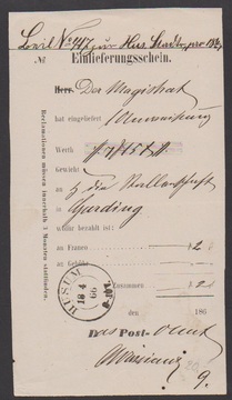"Katharinenheerd", besserer K1 klar 1875 auf vorgedrucktem Post-Ins.-Doc.