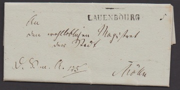 "Lauenburg", (1816)-1853, sechs Briefe mit vorphil. Stempeln, L1, Ovalstempel und K2 (blau und schwarz)