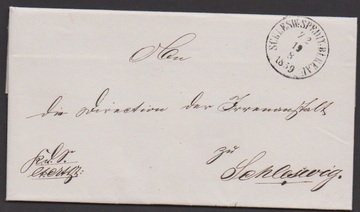 "Schleswig", 1851, Militär-Ortsbrief aus dem dänischen Krieg an den Commandanten