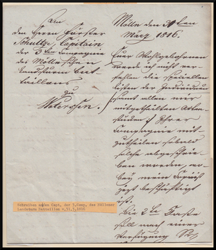 "Mölln", 1816 (Krieg gegen Napoleon), kpl. Brief eines Kapitäns des 3. Landsturm-Bataillons nach Wotersen