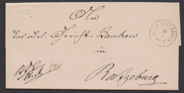 "Schwarzenbeck", 1842/49/57, L1, K2 und K1 auf drei Briefen