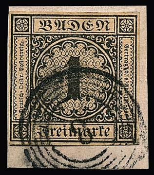 1 Kr. schw./bräunlich, allseits voll- bis überrrandig, zwei Seiten Nebenmarken, auf Kabinettbriefstück mit NS "8" (Baden), Marke war zur Qualitätsprüfung gelöst. Sign. Pfenninger und Fotoexp. Stegmüller. Mi. 320,- +