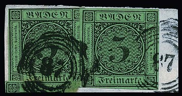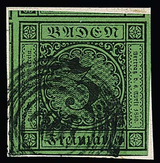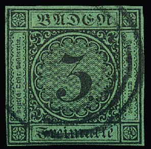 3 Kr. schw./grün, vollrandiges Prachtstück mit seltener Fremdentwertung durch zarten Taxis-NS