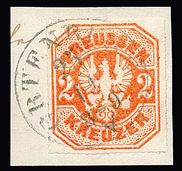 "Reinheim", nachverw. K1 auf Kabinettbriefstück mit Preußen 2 Kr. orange