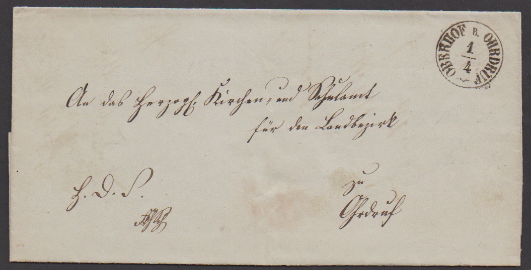 "Obertiefenbach", 1856, der seltene, nur ein Jahr in Gebrauch befindliche große K1 klar auf Brief