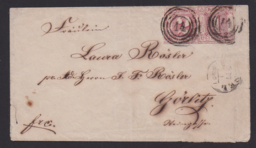 1 Kr. grün per zwei in gutem Taxisschnitt auf Orts-Faltbrief aus Frankfurt (1 Kr. Briefporto plus 1 Kr. Bestellgeld)