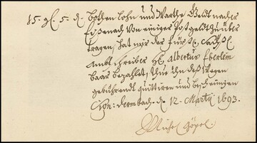 "Dermbach", 1693/94, zwei Postquittungen über Botenlohn mit Unterschrift des Amtsboten Martin Grob