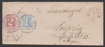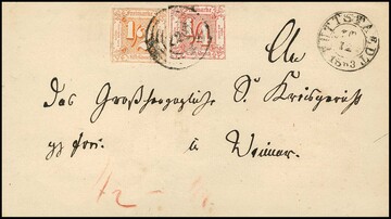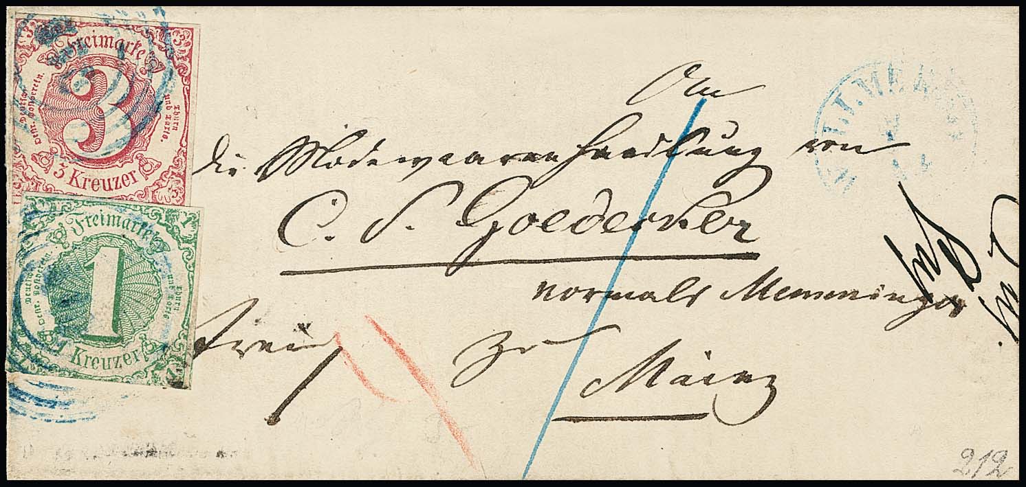 "212" nebst K1 "Wallmerod", je in blau, typische Abschläge in der seltenen Farbe auf kleinem Brief mit 1 und 3 Kr.
