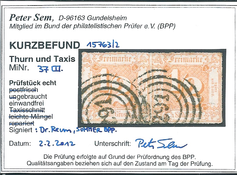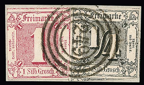 "291" nebst K1 "Gera" auf Brief mit 1/2 Sgr. (oben Schere) ins sächs. Altenburg, sowie auf losem Kabinettpaar 1/2 Sgr. (alleine 150,- Mi., Fotoexp. Sem)