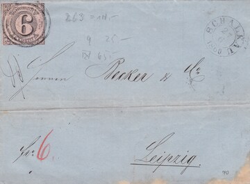 "263" zart nebst K2 "Schalkau" auf Brief (unten randfleckig) mit 6 Kr.
