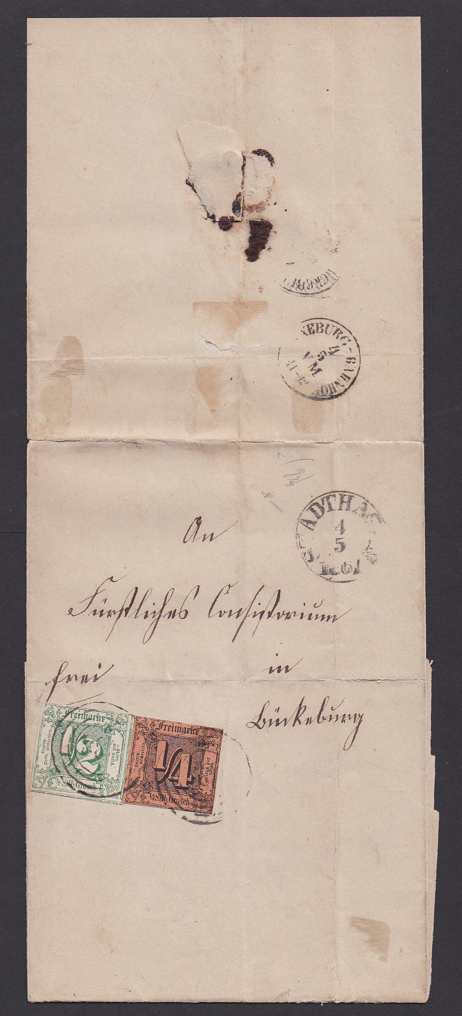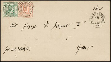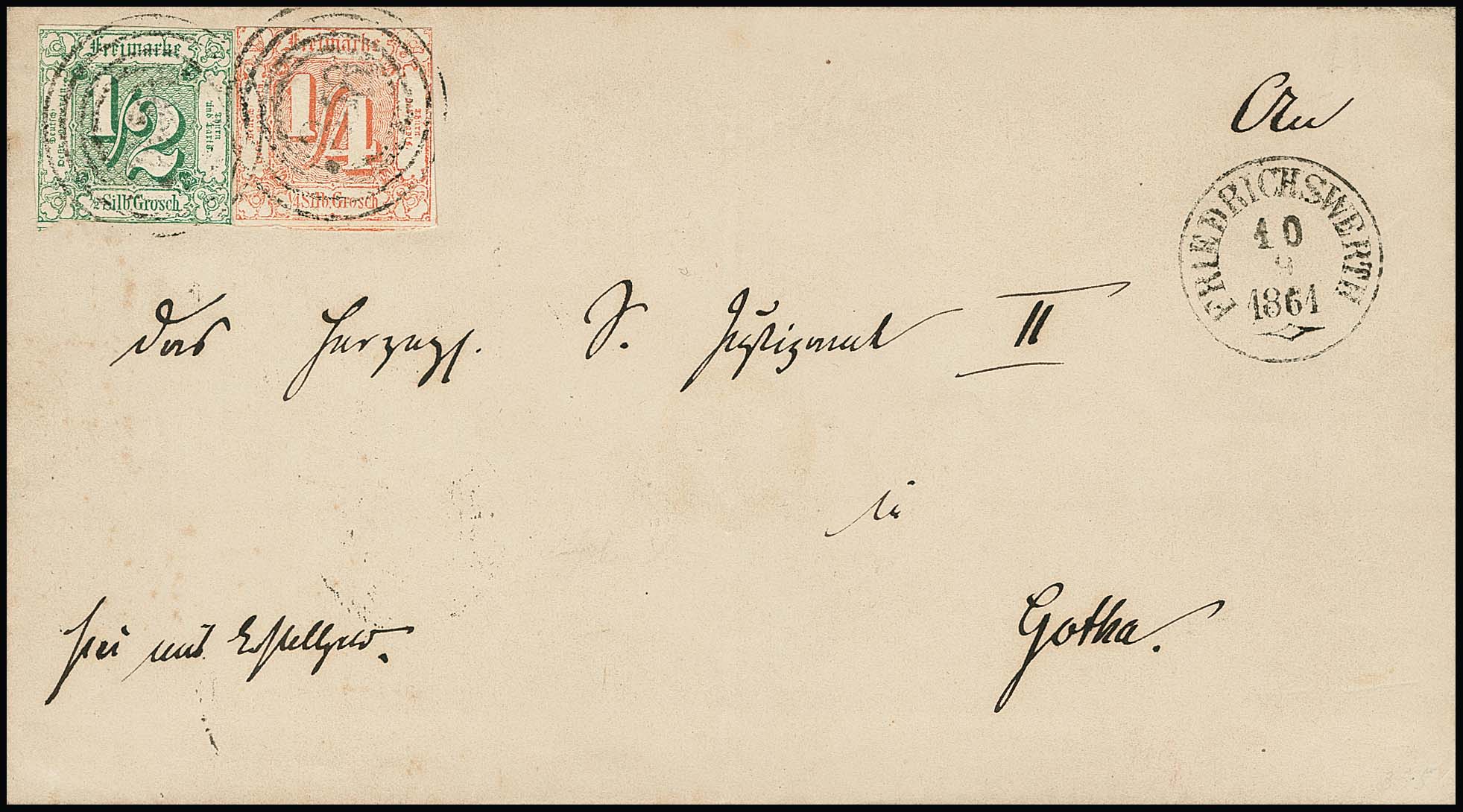 "358" nebst K1 "Friedrichswerth" auf Brief mit 1/4 und 1/2 Sgr. 1861