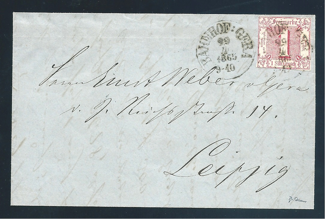 "Gera Bahnhof", besserer K1 als Markenentwertung auf Brief 1 Sgr. rot (Bugspur), sign. Reum
