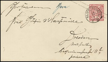 "Gera", hs. Bahnpost-Aufgabe, nebst nachverw. Sächsischem Zug-K2 "Glauchau-Gera" auf NDP-Ganzsache 1 Gr.