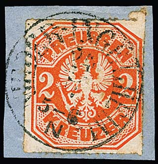 "Mainz", ideal zentrischer Orts-K1 auf Teilbrief mit 1 Kr. nach Castel b. Mainz