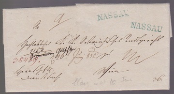 "Nassau", 1832, der grünblaue L1 zweimal klar auf Kabinettbrief nach Wien, Feuser 2359-2/150,- +